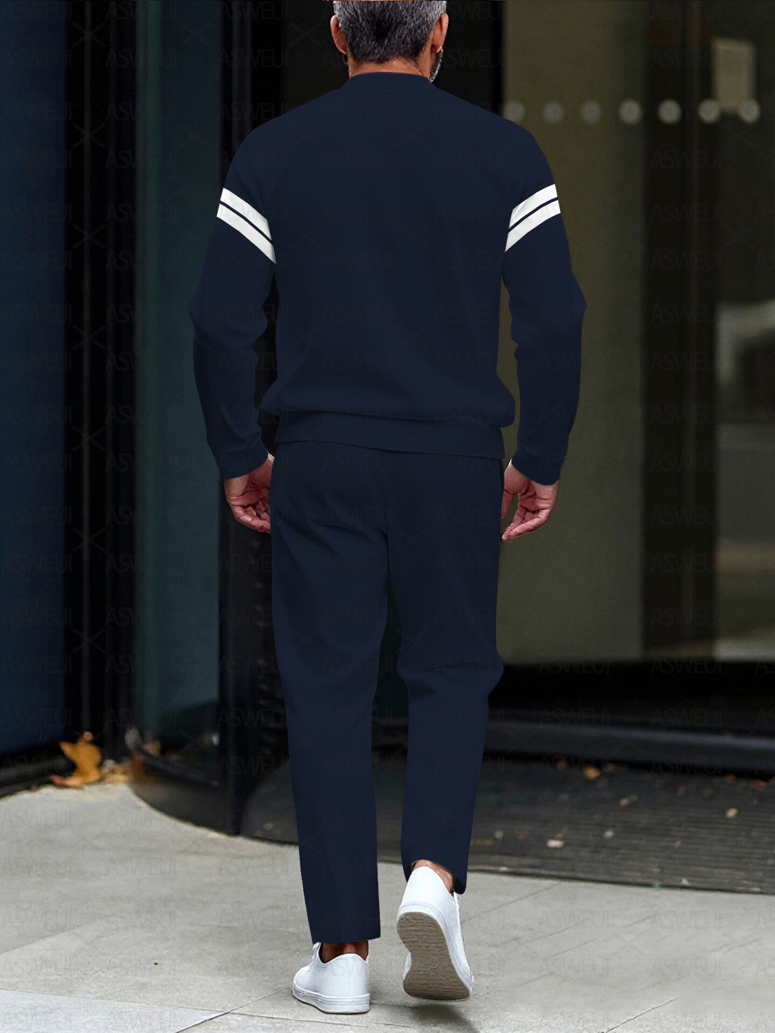 Men's fashion casual geometric print long sleeve zipper two-piece set