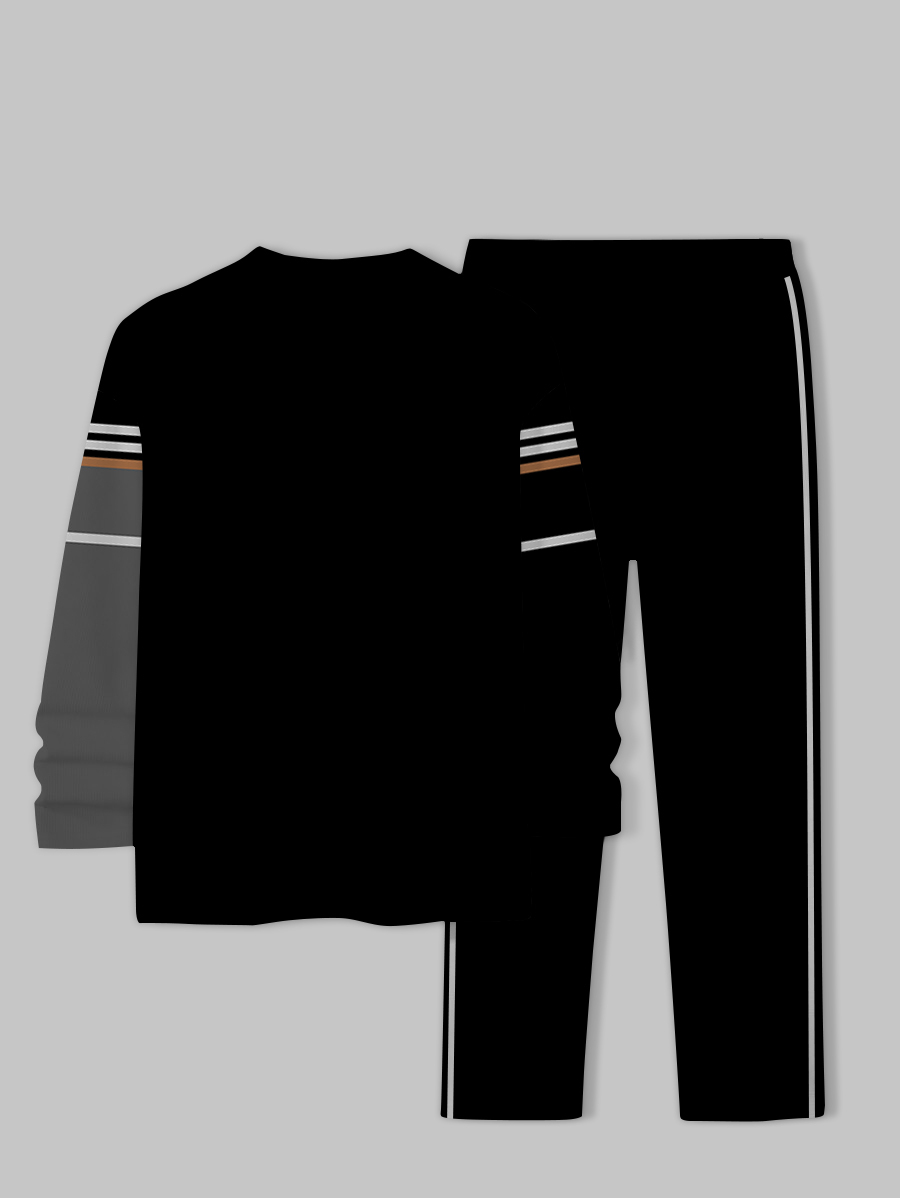 Men's fashion casual geometric printed hoodie two-piece set